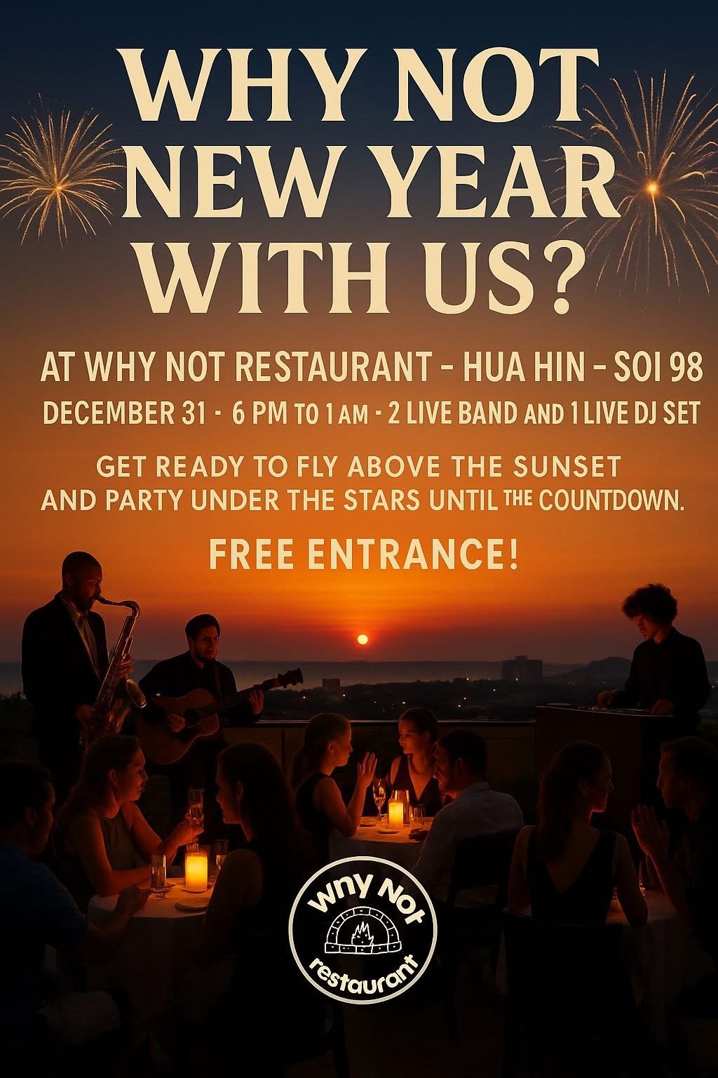 Make sure to book a spot nice and early if you fancy a table for dinner to enjoy Hua Hin's Best New Years Eve Party with Thailand's all time favorite Tribute Band The Bangkok Beatles with a late night International visual Dj playing the best of Soul and Dance floor Classics before, after and in-between sets. Tickets are available at 500tb per person with a complementary welcome drink upon arrival. Space is limited and interest is extremely high so please make sure to get in touch with us nice and early if you fancy joining us for an unforgettable night out with us in Father Teds.