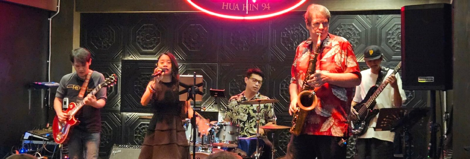 On guitar is Tor, one of the finest guitarists in Hua Hin if not all of Thailand. Tor’s experience as a blues, blues rock and hard rock guitarist allows him to bring a wide range styles, licks, riffs and techniques that are, at times, mesmerizing. At times he fills the room with a sonic barrage of tones and melodies and just as easily he can lay back and become one with his rhythm section.